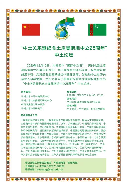 中土关系暨纪念土库曼斯坦中立25周年”中土论坛通知