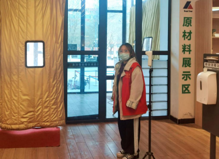 “请保持距离,测温消毒后再进入食堂。”短短一分钟内便要重复好几次,每一次都是同样的真诚和热情。因为身上的志愿者证,这个下午的三点十八分似乎对她有不一样的意义。