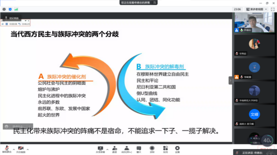 师生做了题为“文化间民主——当代西方民主的文化悖论与实践困境”的线上学术讲座。此次讲座由成人直播