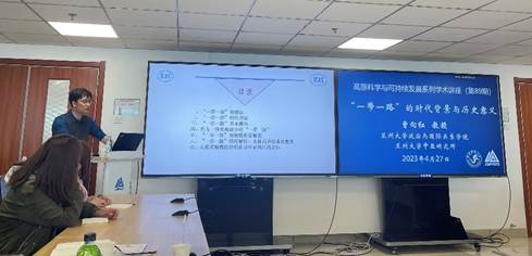 副院长曾向红教授于青海师范大学高原科学与可持续发展研究院开展了题为《“一带一路”的时代背景与历史意义》的讲座。本次讲座由研究院办公室主任曹昱源副教授主持,青海师范大学师生共同聆听本次讲座。