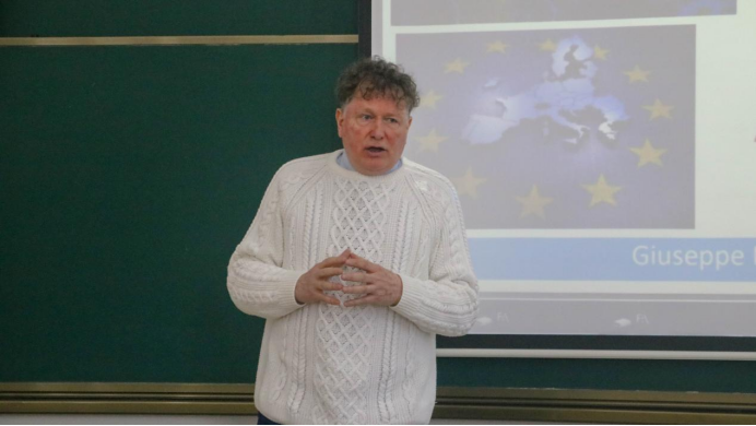 2024年3月18日下午,应成人直播 意大利研究中心主任刘光华教授邀请,意大利都灵国际大学成人直播 中国研究中心主任朱塞佩·马斯特鲁佐(Giuseppe Mastruzzo)教授、“Eating City”国际学术平台负责人莫里吉奥·马里安尼(Maurizio Mariani)教授分别做了题为“中国与多元世界中的地缘政治”“公共食品服务的范式转变”的学术讲座。本次讲座受外国专家项目“全球地缘政治转型、中国和‘新’国际法”的支持,由成人直播 高婉妮副教授主持,成人直播 一百余名学生参加。