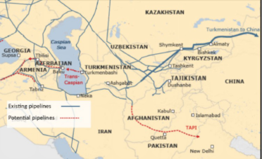 此外,土库曼斯坦是独联体国家中仅次于俄罗斯的第二大天然气生产国。为了实现输气独立,土库曼斯坦一方面在1997年就建成了向伊朗北部输气的管道,另一方面,在尼亚佐夫总统(Saparmurat Niyazov)1992年初次访华期间提出了土库曼斯曼-中国输气管道倡议,但由于过高成本以及土库曼斯坦与中亚邻国关系的恶化,这一倡议未能得到落实。直到2006年尼亚佐夫第三次访华期间,中土两国才签订了协议并取得了突破性进展,共同修建跨境天然气管道,并且,从2009年起30年内中国从土库曼斯坦每年进口300亿立方米天然气。2009年12月,中亚-中国天然气管道(Central Asia-China Gas Pipeline, CAGP, Line A)建成,管线B和C分别于2010年10月和2014年5月建成。2017年,伊朗和俄罗斯停止进口土库曼斯坦天然气,而中国则加大进口额度,成为土库曼斯坦天然气最大的出口国,这实际上也提高了土库曼斯坦能源出口上的战略自主性。