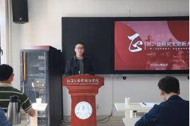 紧接着是老生和新生代表发言。2021级博士研究生赵磊同学作为老生代表发言。赵磊同学以烹饪作比研究生阶段的学术生涯,以对食材的物尽其用告诉新生要充分利用当下,以练就高超厨艺告诉新生要夯实基础,练就扎实本领,用心做好每一件事,并在最后结合自身经验,启发各位师弟师妹要做好面对研究生生活中各种挫折和挑战的充分心理准备和预案。2021级硕士研究生谢诗瑶随后发言,谢同学以诚挚的言语表达了对成人直播