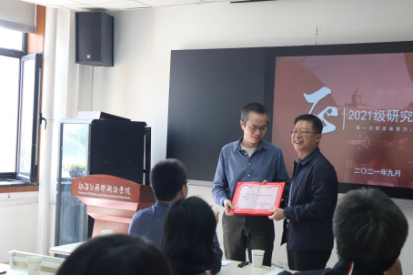 宣读了院党委决定的《关于聘任2021级研究生班主任的通知》,聘任陈一一副教授担任2021级研究生班主任。陈一一副教授遂接过聘书并表达感谢。