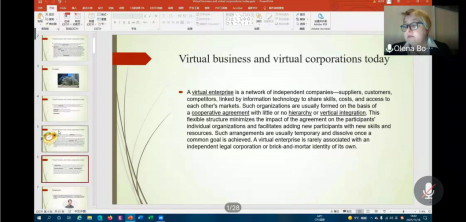 讲座伊始,耶列娜研究员介绍了虚拟商务与虚拟企业的定义、类型。她指出,虚拟商务不同于传统的实体业务,是一种采用电子方式进行业务交易的新模式。这种新模式伴随着网络2.0服务的日益流行而被诸多企业加以运用。在实际应用中,虚拟商务不仅涉及企业与客户的关系,还涉及企业与供应商、竞争对手的合作、业务职能外包,以及远程办公等领域。而虚拟企业则是由独立公司组成的网络,这些公司通过信息技术相互联系共享技能、成本,并进入对方的市场。这种灵活的结构不仅能够最大限度减少对已有参与者的影响,还有助于纳入具有新技能和资源的其他参与者。