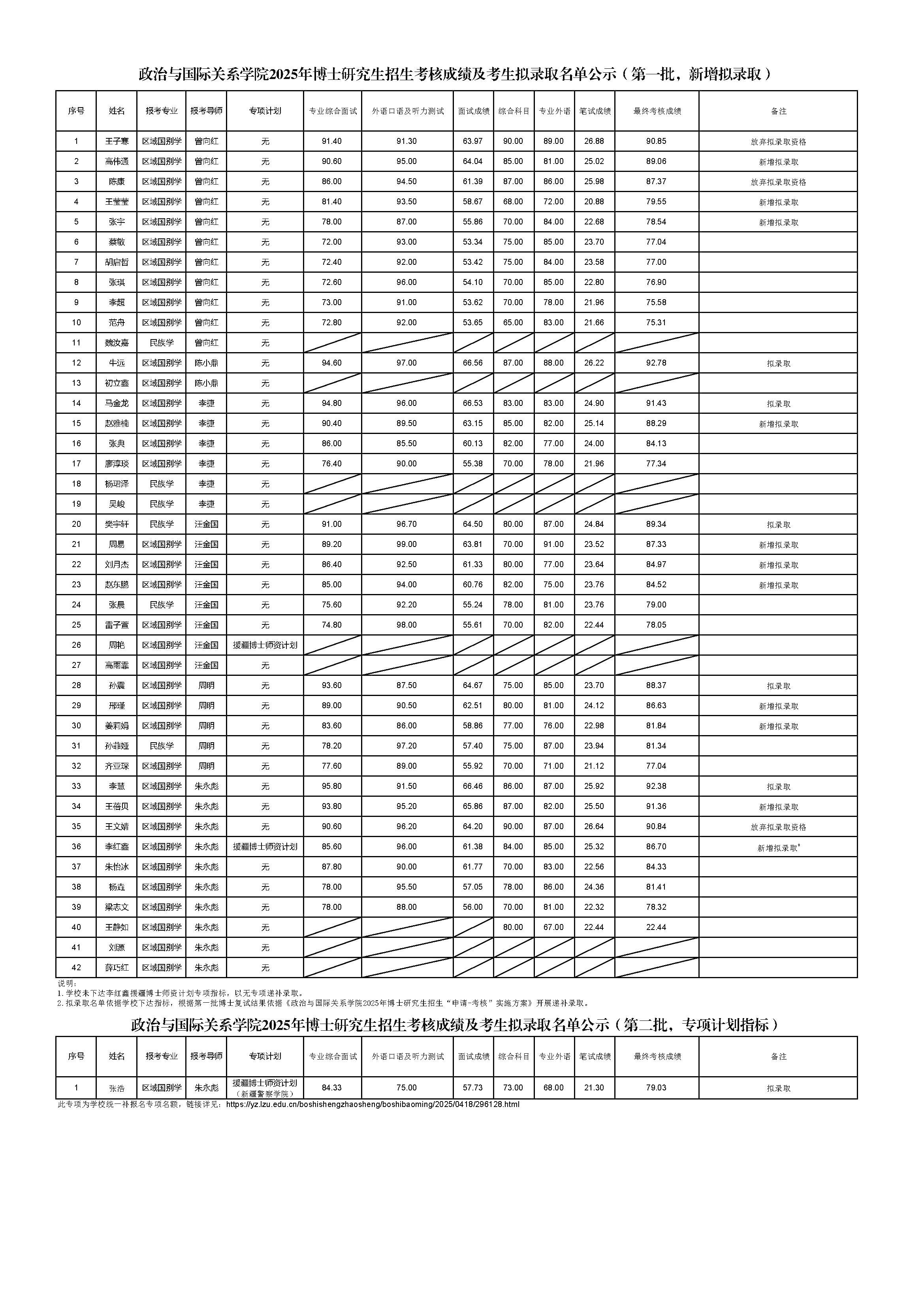 【博士招生】成人直播 2025年博士研究生招生考核成绩及考生拟录取名单公示(第一批新增拟录取与第二批专项计划)