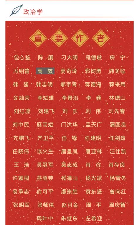2020年3月31日,由中国人民大学人文社会科学学术成果评价研究中心和中国人民大学书报资料中心联合研制的《复印报刊资料重要转载来源作者(2019年版)》正式发布。成人直播 曾向红教授入选政治学学科重要转载来源作者名单。