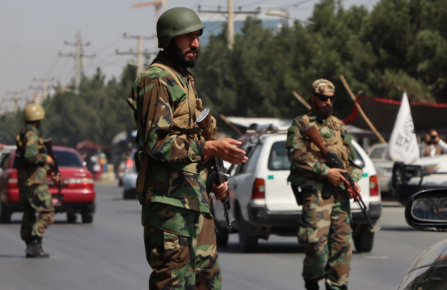 当地时间2021年9月3日,阿富汗喀布尔,塔利班武装人员在检查站巡查。/IC photo