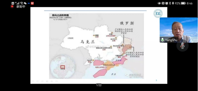 中亚研究所所长杨恕教授以“俄乌冲突分析”为题对俄乌冲突对地区安全、国际秩序的影响进行了分析。杨恕教授指出,俄乌冲突是苏联解体后世界上影响最大的一次局部战争,它在各方面的影响都是全球性的。不过,我们需要长期努力才能明晰其长远影响。