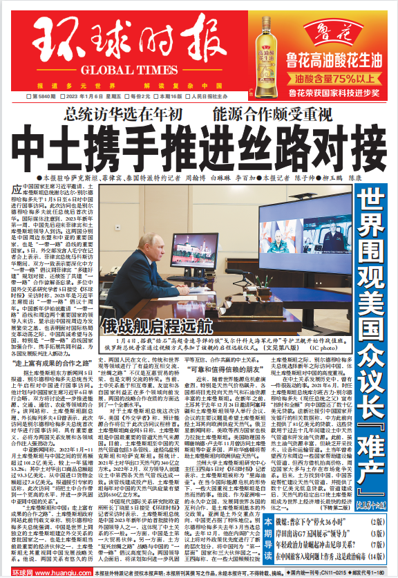 中国现代国际关系研究院欧亚所所长丁晓星5日接受《环球时报》记者采访时表示,土库曼斯坦总统是中国2023年新年伊始首批接待的外国领导人之一,这体现了中土关系的不一般。一方面,中国是土第一大贸易伙伴。另一方面,土方“复兴丝绸之路”战略与中国的“一带一路”倡议高度契合。两国领导人会面后,将谋划如何进一步巩固平等互信、合作共赢的中土关系。