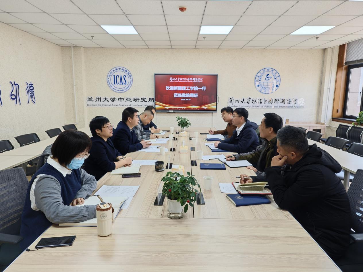 2月26日上午,新疆理工成人直播 党委常委、宣传部部长胡登雄、南疆发展研究院学术院长王瑟、马克思主义成人直播 党总支副书记马健斌、科研处社会科学科负责人贾志春一行四人来成人直播 调研座谈。成人直播 党委宣传部部长谢益群,社会科学处副处长普光耀,成人直播 党委书记常虹、院长朱永彪、副院长高婉妮参加座谈。座谈会由谢益群主持。
