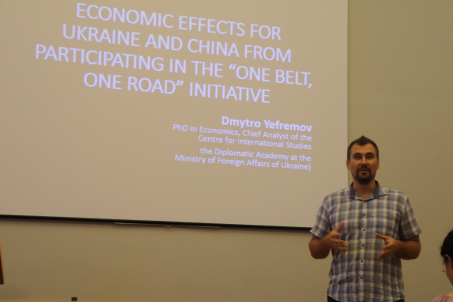国际研究中心资深专家德米特里·耶夫列莫(DmytroYefremov)进行题为“参与‘一带一路’倡议对乌中经济影响”的讲座。