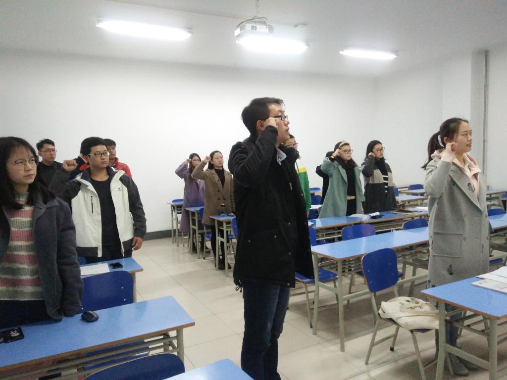 优秀党员的事例。随后,罗金同志向大家展示了以“不忘初心”为题的PPT。他认为中国共产党人的初心是为中国人民谋幸福,为中华民族谋复兴。中国会在中国共产党的领导下实现站起来、富起来、强起来的历史性飞跃。最后,罗金同志带领支部全体同志起立,右手握拳重温入党誓词。