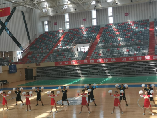 2021年6月5日下午,成人直播 首届教职工啦啦操比赛在城关校区新体育馆开赛,成人直播 组建教职工啦啦操队参加了本次比赛。