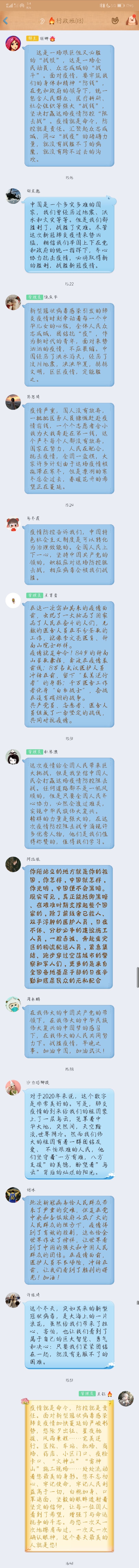 2017级国际政治专业本科生秦佳楠:随着时间的推移,疫情防控阻击战已进入关键时期。通过参与此次活动,学习相关课程内容,我对疫情防控有了更加深刻的理解和感悟。面对疫情,全国各地一盘棋,全国人民一条心;面对考验,各行各业共迎敌,各族人民共奋战。在疫情防控过程中,涌现出一批又一批甘于奉献、不畏艰险的勇士。他们挑起重担,横跨关卡,从他们身上,我看见民族精神熠熠生辉,看见英雄模样闪闪发光。为了打赢这场疫情防控阻击战,全国各地的青年响应号召,投身一线。疫情当前,我们应当好疫情防控的执行者,以青春力量助力打赢疫情防控阻击战。“一个时代的精神,是青年代表的精神;一个时代的性格,是青年代表的性格。”青年是国家的未来,也是时代的接班人。我们要用青春奋斗担当历史使命和时代责任,用青春岁月谱写新时代华美篇章。