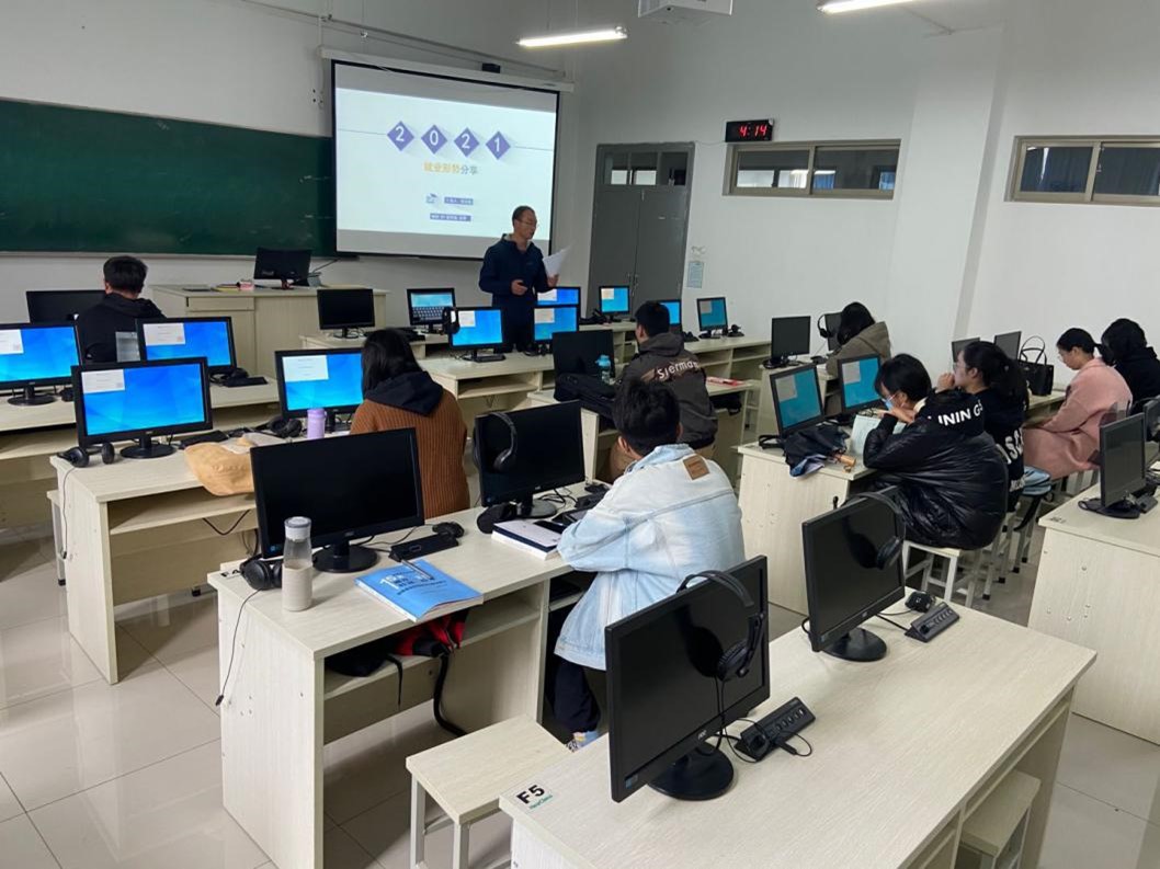 活动由本科生辅导员雷环瑞老师主持,活动开始,本科生辅导员雷环瑞老师向同学们分别介绍了当前的就业形势,考研趋势,考研科目选择等方面。同时积极鼓励同学们做好毕业安排,合理就业,树立正确的职业观。