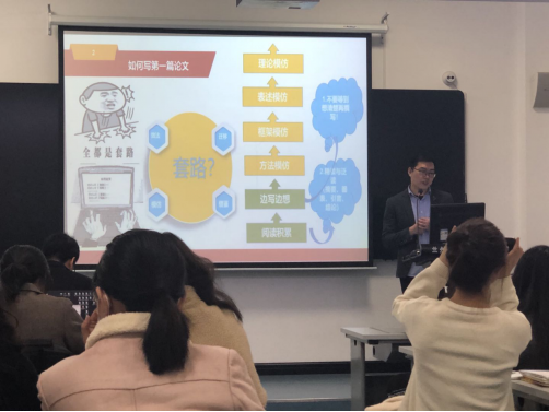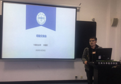 博士研究生蒋岱位同学进行经验分享。他们分别对同学们存在的关于论文写作与社会调研、研究生与导师的关系、研究生学业生涯规划等方面的问题进行了详尽解答。