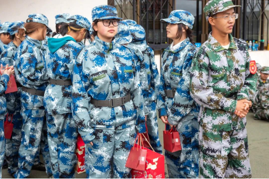 还为每间寝室准备了中秋月饼大礼包,表达对同学们的祝福。姚志海老师对此次军训的组织情况进行询问,并逐一了解同学们在此期间的身体状况、训练内容等。此外,他还提醒同学们注意天气变化,适时增减衣物,避免感冒。在交谈中,同学们紧紧围成一圈,认真聆听老师们的叮嘱,同时也分享着各自在这一段时间以来的经历和感悟。最后,姚志海老师说,军训是一次极好的锻炼机会,希望同学们都能在这段时间里增强自己的适应能力,提高生活本领,在接下来的训练中再接再厉,同时,在休息的时间里,也要记得多联系家人,分享自己最近的生活状况。