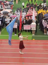 院长汪金国老师等教师代表组成的教师方阵与全体研究生运动员组成的研究生队伍参与队列表演。全体师生无畏风雨,阔步前行,英姿飒爽,气势磅礴。“为人以正,为政以德。大成政国,公行天下”的口号声响彻全场,道出了政国院师生敢为人先,胸怀天下的肆意豪情。