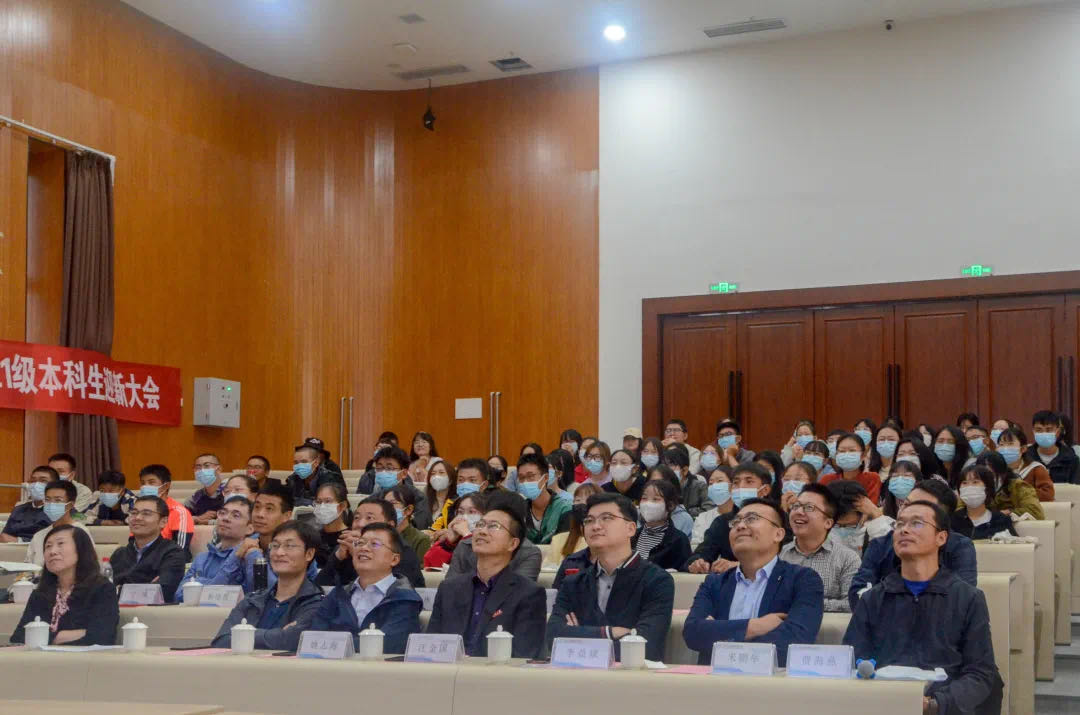中收获荣誉感、使命感与责任感,他借用茨威格的名言告诉同学们“一个人生命中最大的幸运,莫过于在他的人生中途,即在他最富创造力的壮年之时,发现了自己的人生使命”。王术森老师希望大家珍惜大学四年时光,加强体育锻炼,增强专业素养,培养良好人缘。宁彧老师点明大学是修炼技能、丰富知识、有付出就有回报的地方。靳晓哲老师期待同学们在大学四年都有不同收获,在不同的选择和经历中不断充实自己的生活,通过合理的规划给自己留下美好的回忆,不负时光,不负自己。李泽老师希望同学们安心治学,磨砺性情,适度娱乐,做好学业和职业生涯规划,不留遗憾。毛建平老师指出同学们应抓住自己内心感悟,回归自我的本真,明白自己的诉求。全体老师共同对新生的到来表达欢迎与祝福。