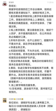 党委副书记贾海燕老师、2021级2班班主任米鹏举老师还在网课期间到学生宿舍了解同学们线上学习的情况。贾海燕老师总结道:“我们要响应成人直播
