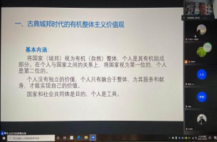 师生开展鹿鸣讲堂“正德”系列第三十七讲以及“政国”系列第二十九讲两场讲座活动。在“政国”系列第二十九讲的活动中,丛日云教授围绕西方政治思想史上的三次价值革命展开深入论述,用简洁的语言,生动的例子帮助同学们更好地理解西方政治思想史上曾发生的几次价值变革。线上学术讲座活动的举办,有利于扩展学生的学习思维,开拓新的学习视野,丰富成人直播