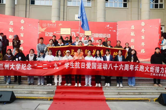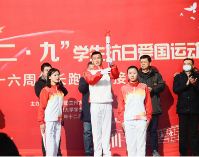 于12月9日14时30分在榆中校区闻欣堂前举行本科生“一二•九”长跑火炬接力赛。比赛开始前,首先由国旗护卫队手持各成人直播