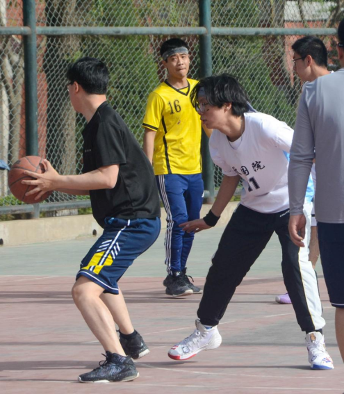 在短暂热身过后,双方队员各自就位。伴随着一声哨声,球被抛向空中,学生队刘一博与米老师同时高高跃起争夺球权,只见刘一博手一拨,学生队率先拿到球权发起进攻。上半场时间内,学生队受到老师们的压制,得分暂时落后于老师队伍,但他们并没有因此气馁,在中场休息时及时调整战术。下半场开始,学生队伍的快速反攻,高密度防守让得分差距慢慢缩小,老师队伍得分不再那么轻松,双方打得有来有回,比赛呈胶着状态,战况激烈。比赛进行到最后一分钟,比赛双方仍然积极防守和进攻。最终,学生队伍惜败老师队伍。赛后,老师们为学生队传授自己多年的篮球经验,同学们积极吸取经验,相信在老师们的经验分享与日常刻苦的训练后,成人直播