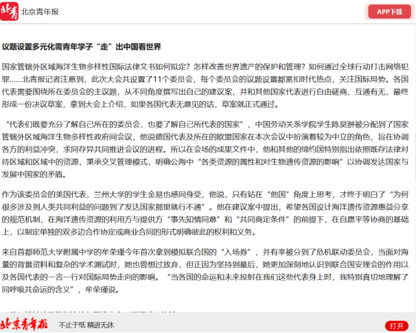 图/北京青年报对本次参会代表金易同学的采访报道