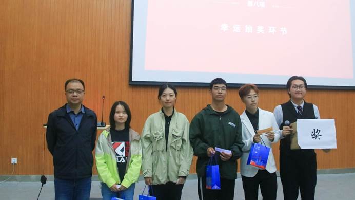 党委书记常虹老师与院长汪金国教授在纸箱共同抽取带有颜色的纸条,与放置于新生信封中的纸条相对应,纸条颜色一致的同学即为获奖,并由成人直播