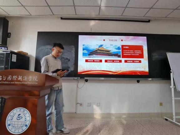 2023年12月19日,政治与国际成人直播 研究生会与研究生第二党支部联合开展“学习习近平文化思想,建设文化强国”十二月主题党日活动,曹鑫隆同志围绕“宣传思想文化工作所要完成的首要政治任务”、“新的历史起点上所肩负的文化使命”、“未来文化建设所遵循的三个基本原则”以及“七个着力相关落实要求”等相关内容带领支部学习习近平文化思想。
