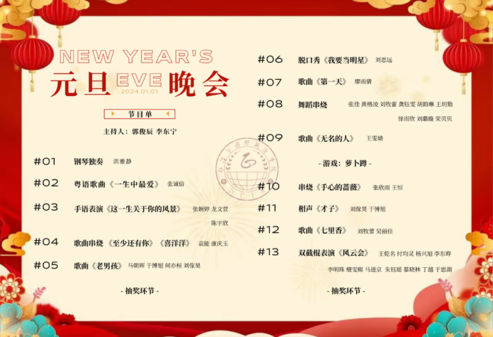 元旦晚会于2024年1月1日晚19:00在芝兰苑三楼学生活动中心顺利举行。本次活动由成人直播