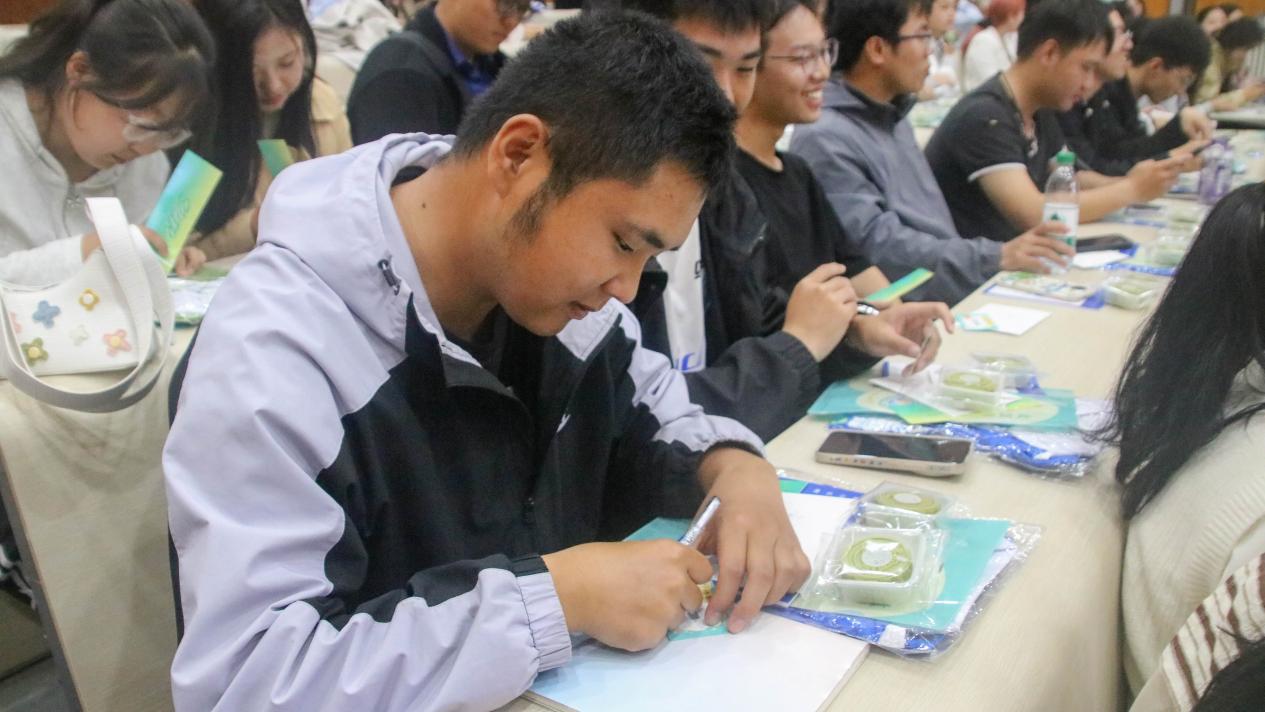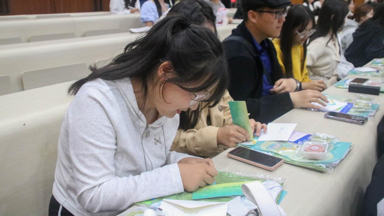 大会第四项,进行“幸运刮刮乐”活动,由2022级国际政治班梁嘉伟同学主持。此时,每位新生的座位上,都摆放着一封由高年级学长学姐亲手书写的新生寄语,以及一份由成人直播
