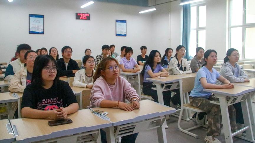 石韫玮同学围绕“青年工作重要思想的核心内涵”“激活‘三会两制一课’的实践路径”“提升团的引领力、组织力、服务力”三个板块,向同学们详细阐释党对青年工作的指导思想和团员青年所承担的国家责任。