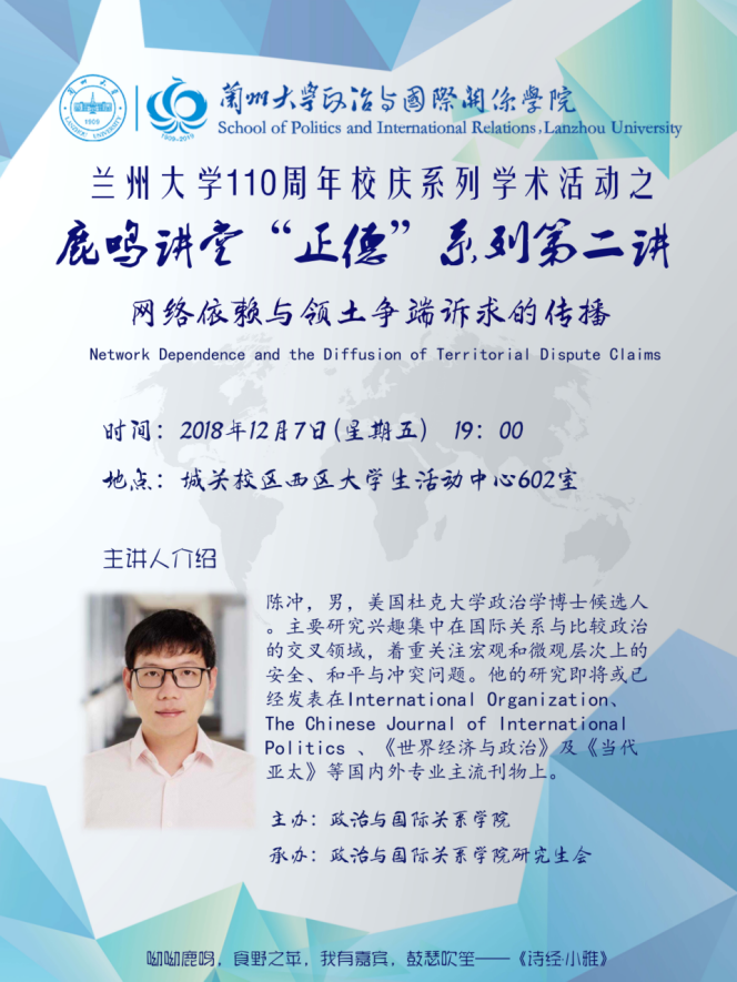 应成人直播 邀请,美国杜克大学政治学博士候选人陈冲将于2018年12月7日来成人直播 进行学术交流并作讲座,欢迎广大师生届时参加。