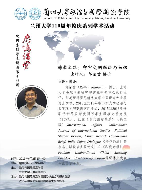 应成人直播 邀请,上海大学全球问题研究院南亚研究中心执行主任郎荣吉(Rajuv Ranjan)博士2019年6月2日14:30到榆中校区进行学术交流并作讲座。欢迎广大师生届时参加。