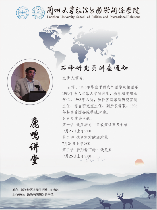 应成人直播 邀请,中国国际问题研究院石泽研究员于2019年7月23日-26日来成人直播 进行学术交流并作讲座。欢迎广大师生届时参加。