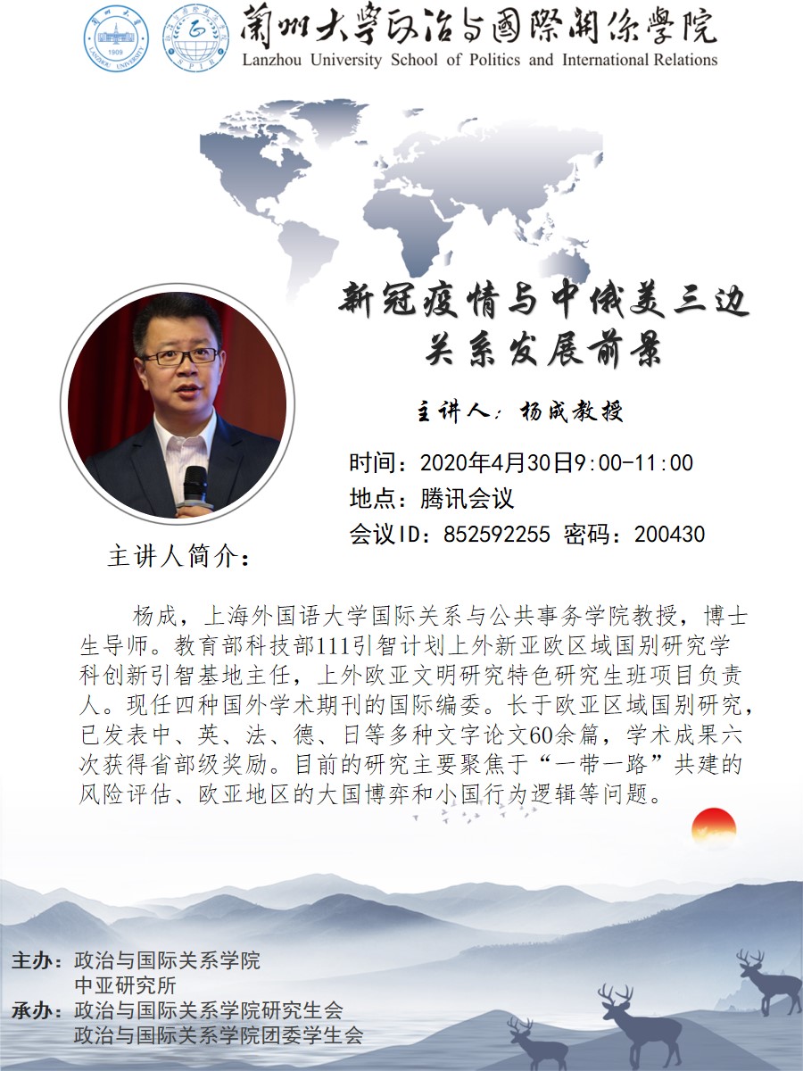 应成人直播 、成人直播 中亚研究所邀请,上海外国语大学国际关系与公共事务成人直播 杨成教授为成人直播 师生做线上学术讲座。