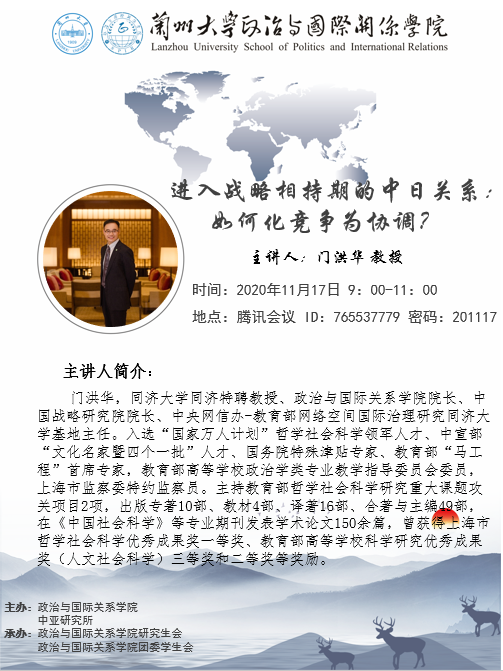 应成人直播 、成人直播 中亚研究所邀请,同济大学成人直播 门洪华教授为成人直播 师生做学术讲座。届时欢迎广大师生参加!