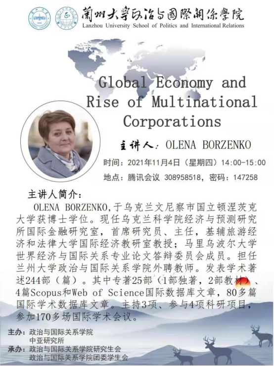 应成人直播 、成人直播 中亚研究所邀请,乌克兰科成人直播 经济与预测研究所研究员耶列那·波尔申科为成人直播 师生做学术讲座。欢迎广大师生届时参加。