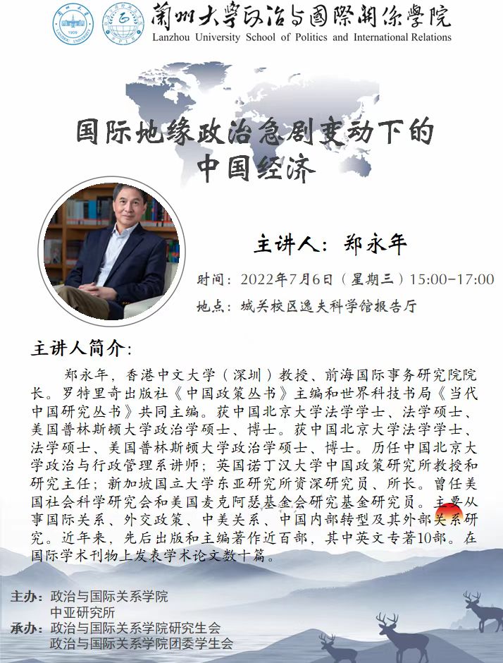 应成人直播 、成人直播 中亚研究所邀请,香港中文大学(深圳)教授、前海国际事务研究院院长郑永年为成人直播 师生做学术讲座。欢迎广大师生届时参加!