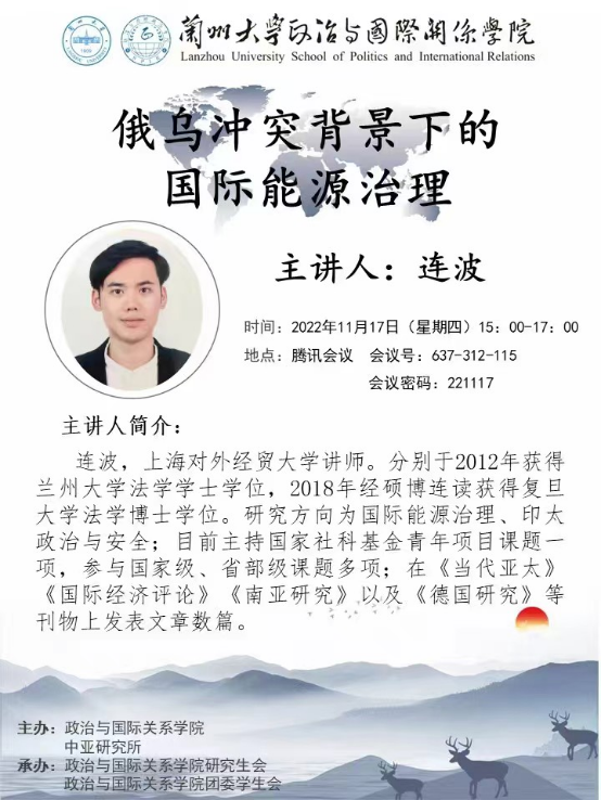 应成人直播 、成人直播 中亚研究所邀请,上海对外经贸大学讲师连波为成人直播 师生做学术讲座。欢迎广大师生届时参加!