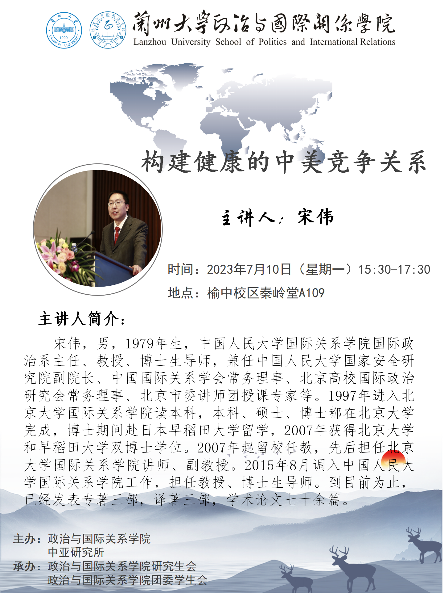 应成人直播 、成人直播 中亚研究所邀请,中国人民大学国际关系成人直播 国际政治系主任、教授、博士生导师宋伟为成人直播 师生做讲座。欢迎广大师生届时参加!