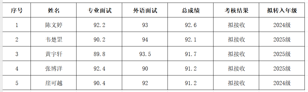 根据《成人直播 2025年接收转专业学生方案》的工作要求,经学生本人申请、资格审查、面试考核,现将成人直播 2025年转专业拟接收名单公示如下: