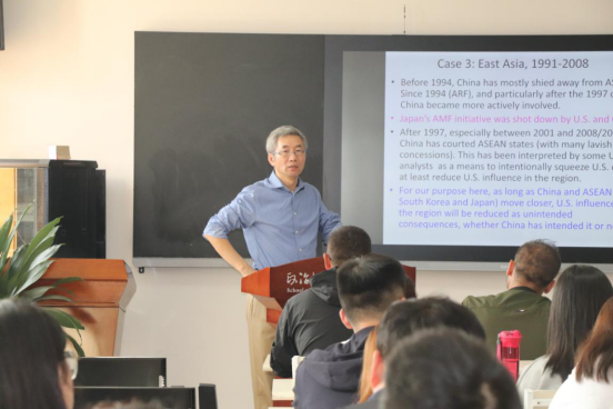 In the afternoon, Professor Tang delivered an academic lecture entitled "Theoretical Innovation of Social Sciences". The lecture was presided over by Professor Chen Xiaoding, Deputy Dean of our school, and more than 120 teachers and students attended this lecture.