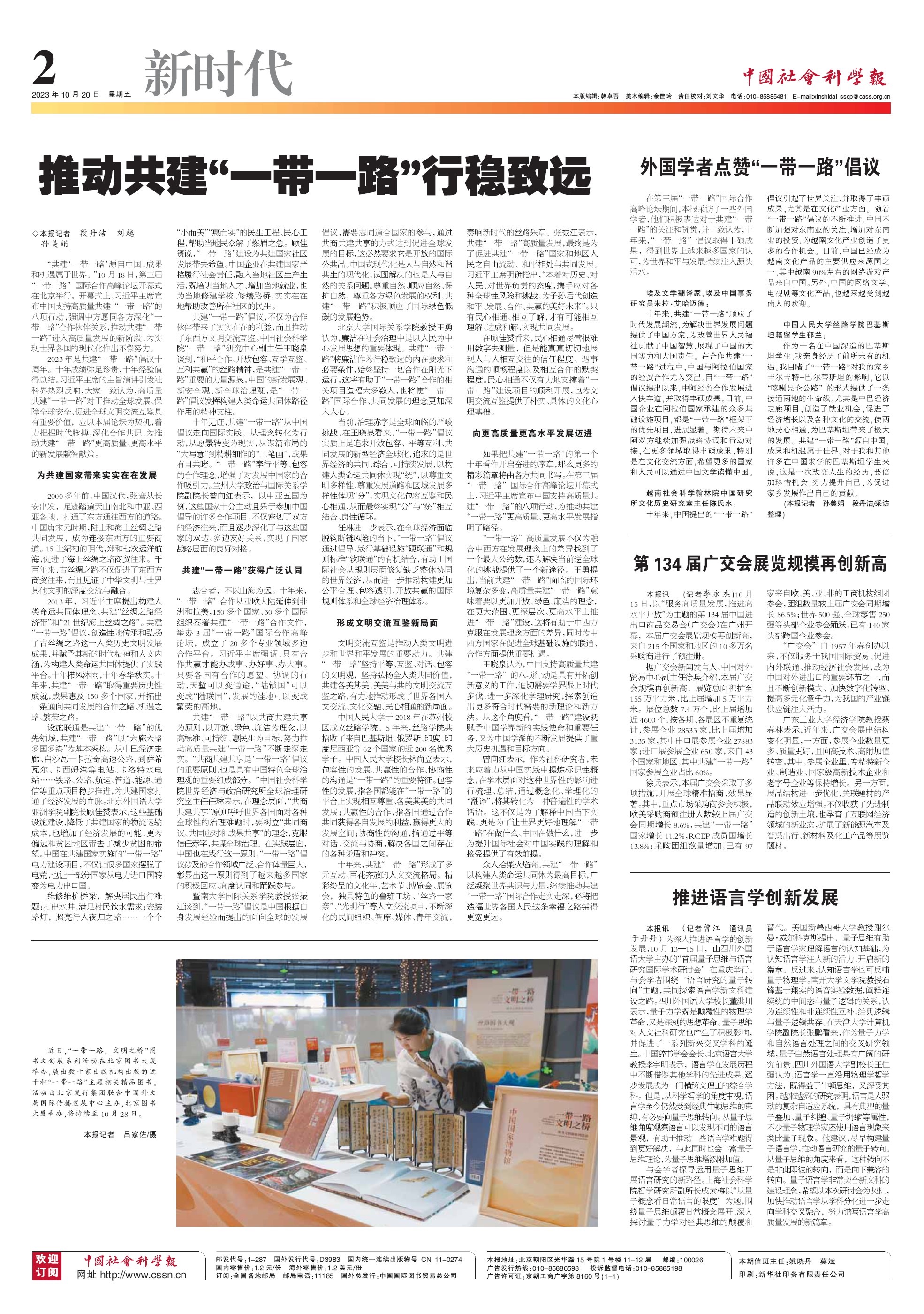 2023年是共建“一带一路”倡议十周年。十年成绩弥足珍贵,十年经验值得总结。习近平主席的主旨演讲引发社科界热烈反响,大家一致认为,高质量共建“一带一路”对于推动全球发展、保障全球安全、促进全球文明交流互鉴具有重要价值,应以本届论坛为契机,着力把握时代脉搏,深化合作共识,为推动共建“一带一路”更高质量、更高水平的新发展献智献策。