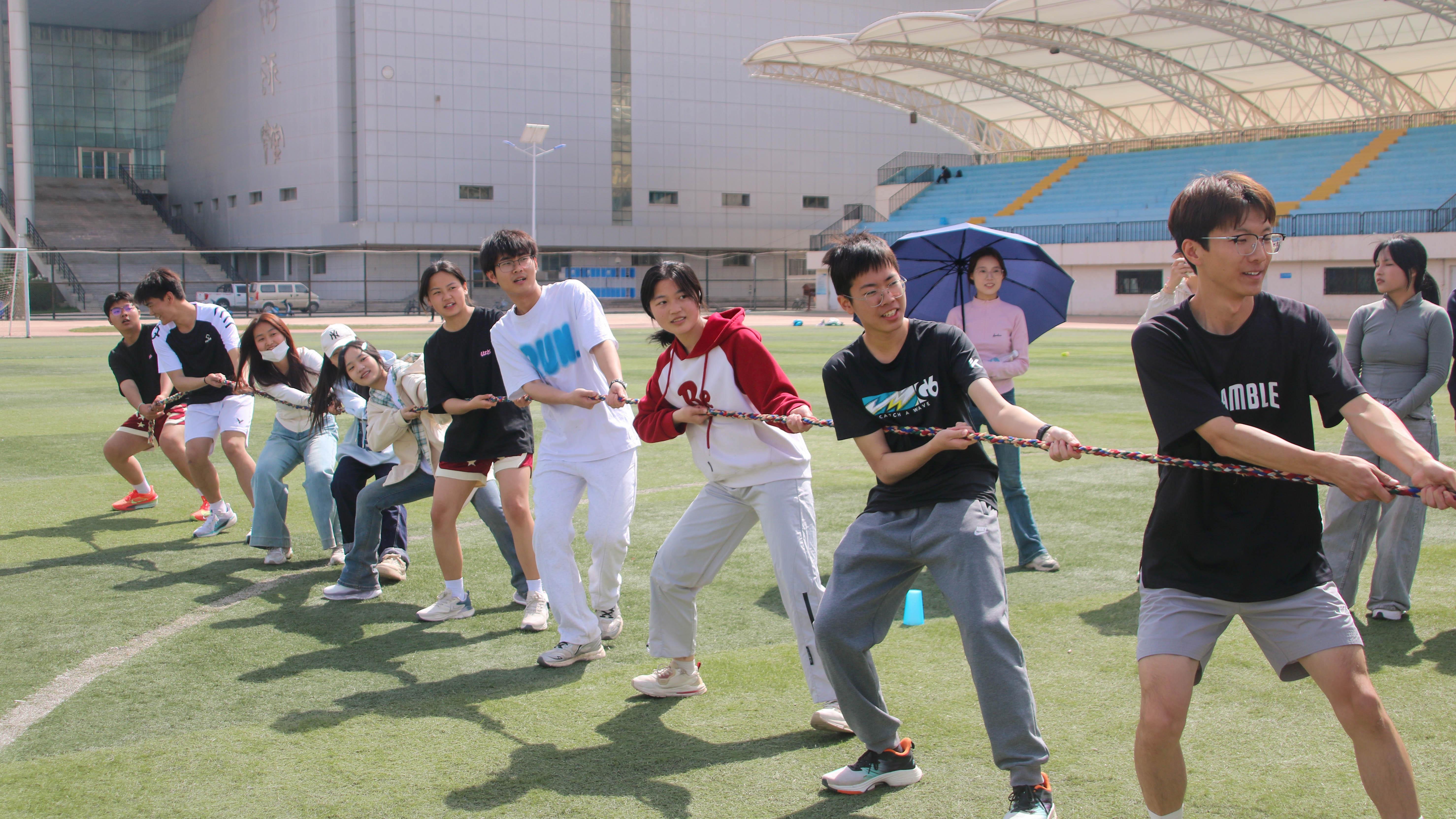 压轴进行的“4×100接力”和拔河比赛将运动会推向高潮。接力赛中,运动员们如离弦之箭,风驰电掣般在跑道上飞驰,每一棒的交接都传递着速度与激情,承载着团队的期望;拔河场上,双方队员紧握绳索,身体后倾,齐心协力,伴随着震耳欲聋的呐喊助威声,拼尽全力往后拉,充分彰显集体力量的强大,展现出坚韧不拔的团队精神。