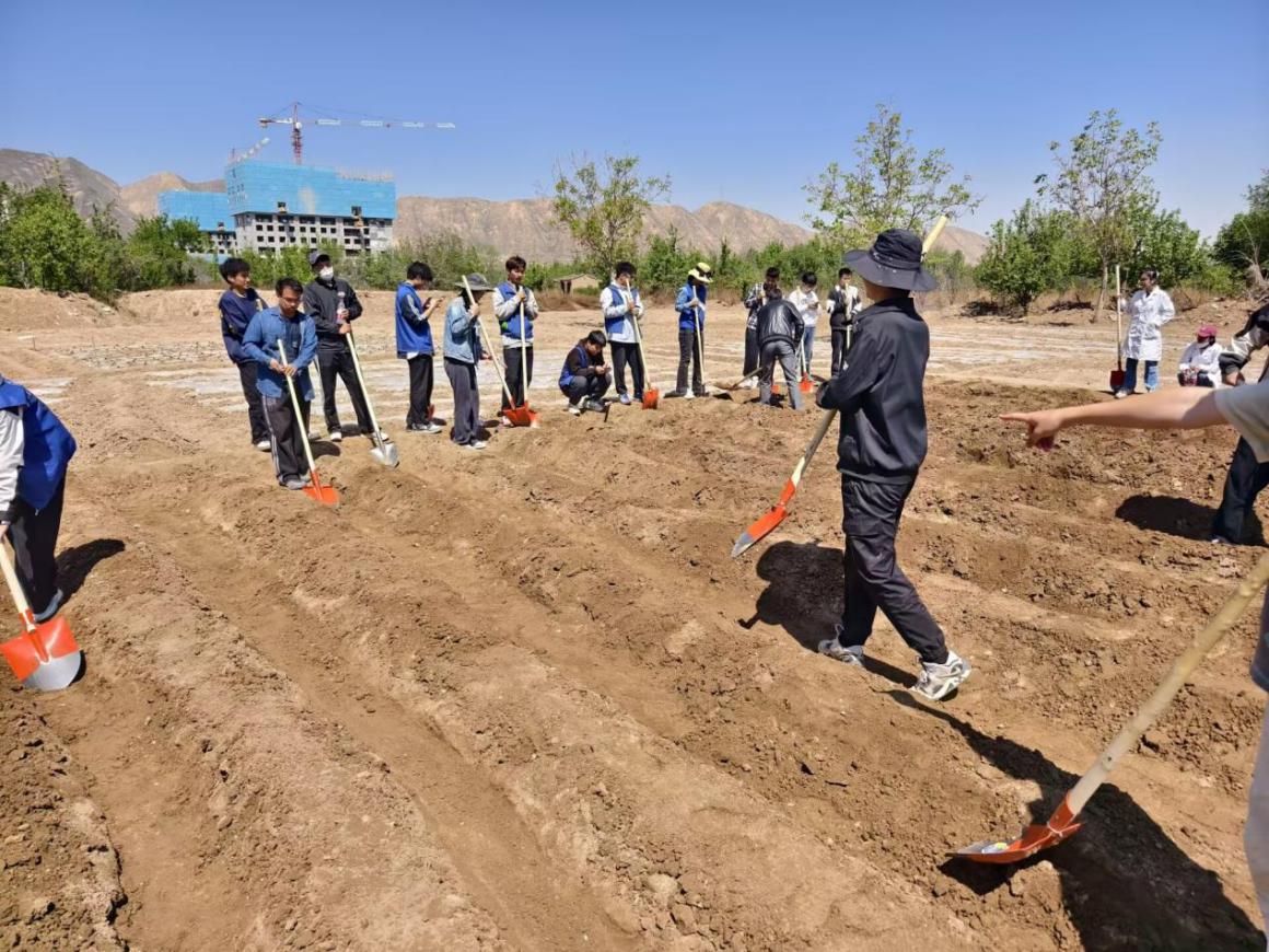 “布谷飞飞劝早耕,春锄扑扑趁春晴。”为丰富同学们的生活经验,提高大家对农作物的认识,2025年5月10日上午,由成人直播 与生态成人直播 联合打造的“开心农场”劳动实践活动正式启动。当晨曦穿透云层洒向萃英山,成人直播 榆中校区干旱楼前已是一派热火朝天的景象,成人直播 8名志愿者身着蓝色志愿者马甲,手持农具,在专业教师指导下上着一堂别开生面的农耕实践课程。